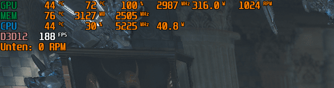 Bild 1, GPU hat noch "kalte" 44°C, Hotspot 72°C, es liegen aber bereits über 1.000 rpm an, vermutlich wegen dem Ram, der hat bereits 76°C. während der Rest der Karte halt noch "kalt" ist.