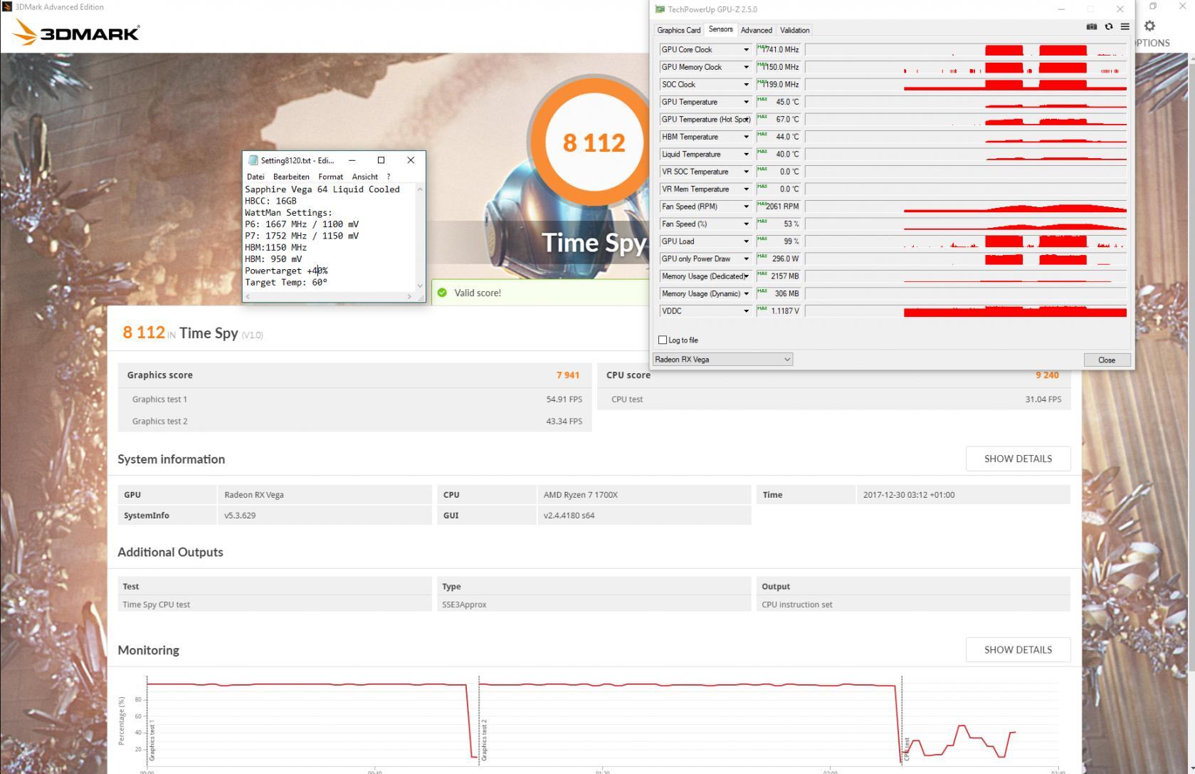 25490 GPU Score Vega 64 lc P7: 1752 MHZ/1240mV HBM: 1150MHz/1005mV @ragman1976