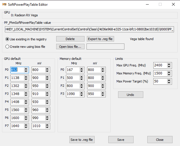 Die andere Frage ist warum willst du unbedingt auf 950mV mit HBM P3 und damit automatisch auch Chip P2 wenn du dein reg.file benutzt und wenn ich mir da deine Staffelung anschaue liegst du ja mit P3+P4 <950mV das macht überhaupt keinen Sinn. So kannst du das reg.file auch gleich weg lassen und Wattman nutzen.