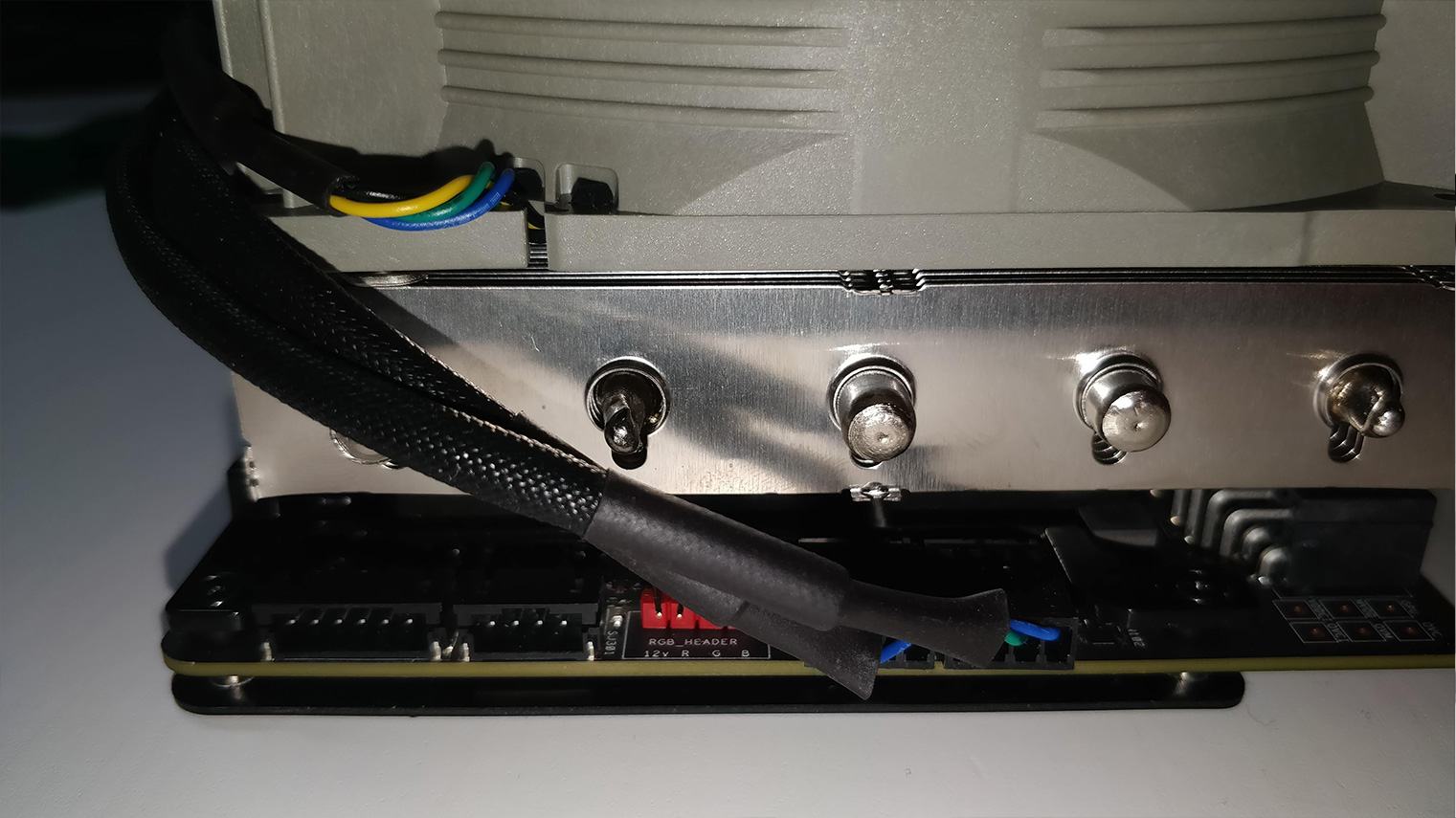 Auf Bild 06.jpg kann man auch einen der Pins sehen die gerade so am inneren Lüftergehäuse lang führen.