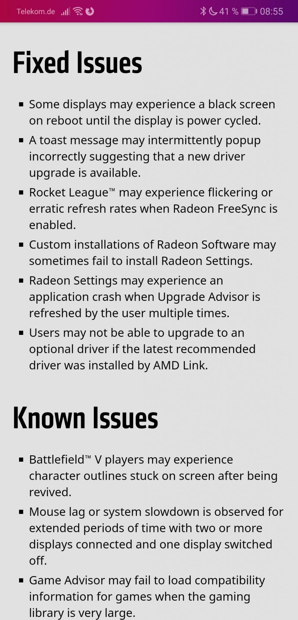 Gibt einen neuen Treiber, 19.1.2. Bin gespannt, ob mein "black screen on reboot" und die anderen "Fixed Issues" tatsächlich gefixt wurden. Beim letzten Treiber hat das ja mal überhaupt nicht funktioniert.:shake: