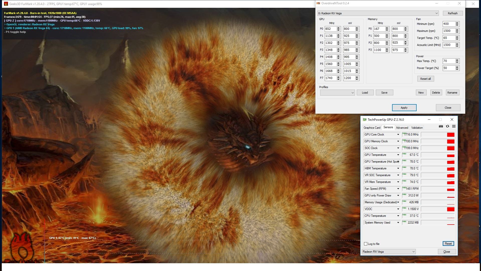 Erst danach den HBM-Takt schrittweise(10MHz) nach oben nehmen, dadurch wird sich nach und nach der effektive Takt reduzieren(stärke Belastung,Temperatur).