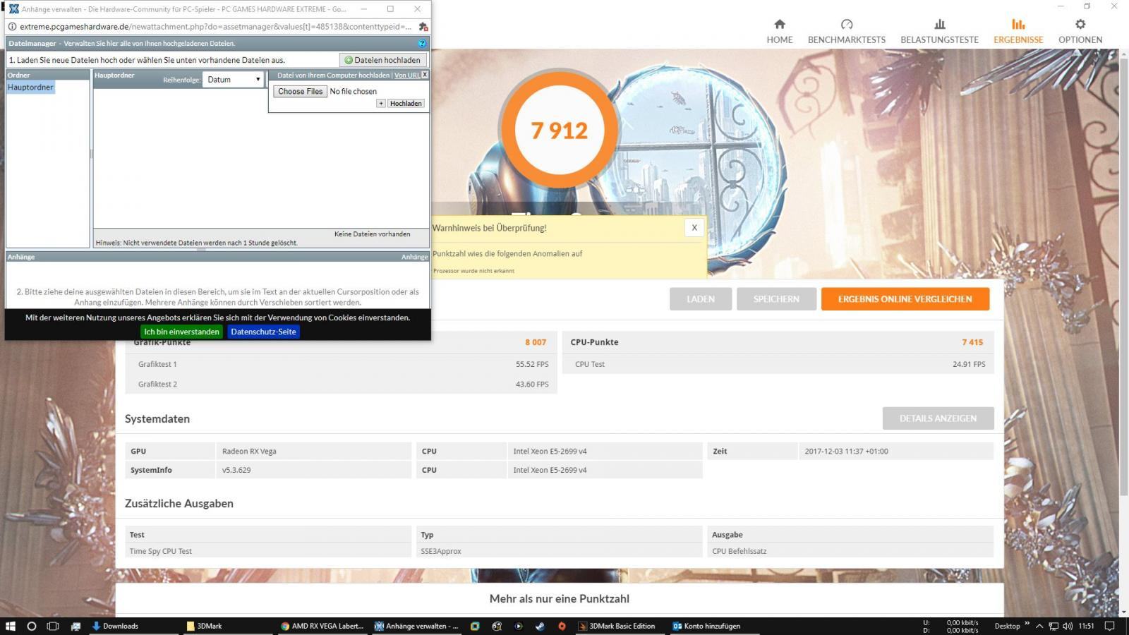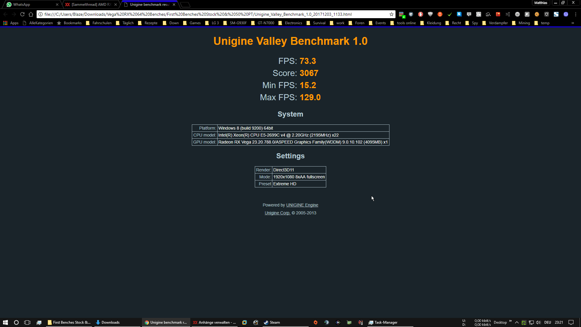 Hatte zum warm werden nur das PowerLimit auf +50 gesetzt und den Core Takt auf Standard (Vega RX 64 LC) belassen. Den HBM2 hatte ich auf 1100 MHz festgelegt.