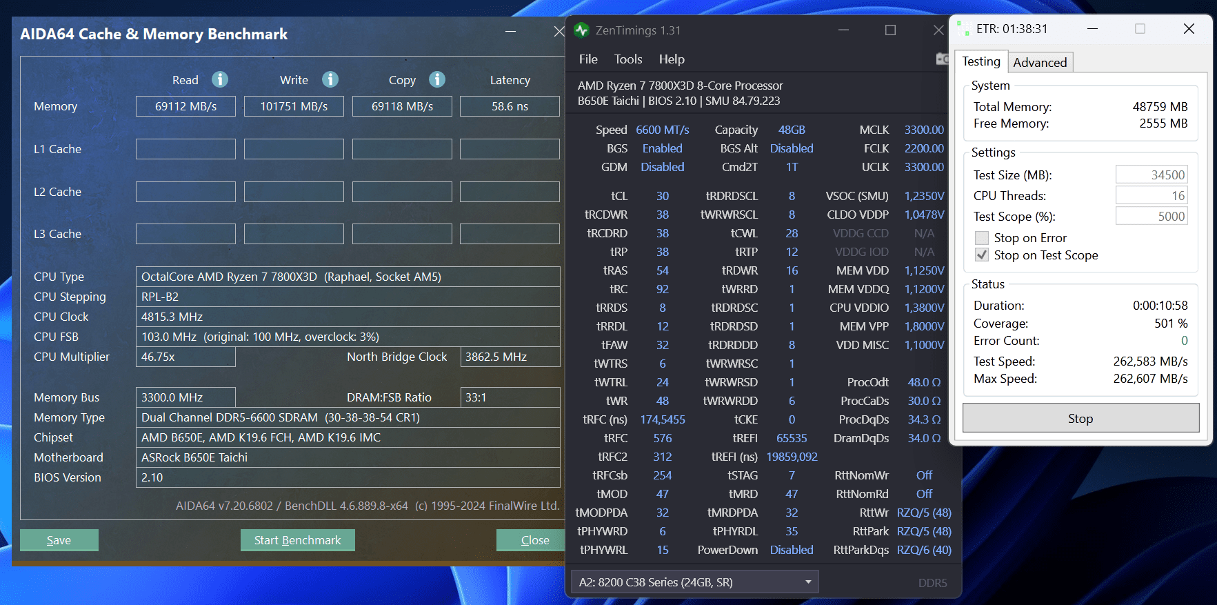 Die 6400Mhz CL30 laufen entspannt mit 1,38V.
