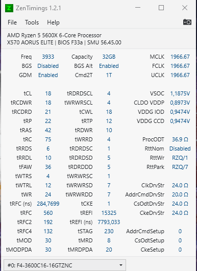 Also verglichen zu meinem Micron E-Die DR 32GB Kit machen die Hynix Chips, ja echt einen besseren Eindruck beim Benchmark. Muss dafür mein Kit mit dem Setting nur mit 1,384V befeuern.