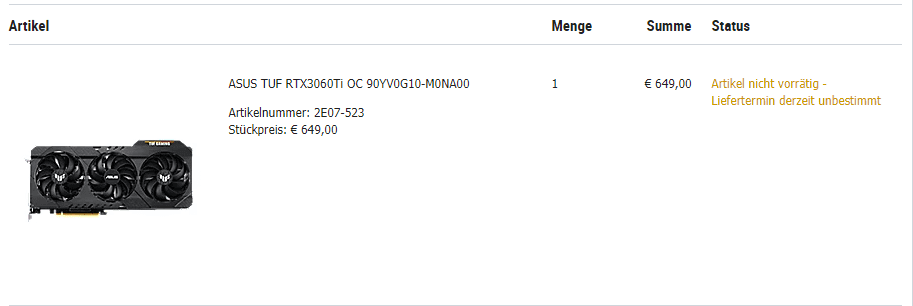 Ich bin auch mal gespanntDie cyberport-Karten sind doch auch schon wieder ewig verfügbar, das wird doch auch wieder nix![]()