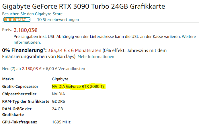 War übrigens länger zu kaufen.Ist die 3090 Turbo von Gigabyte für 2180 EUR nicht interessant?