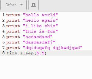 Jetzt soll ich im Editor ne Datei anfertig mit paar print Befehlen.