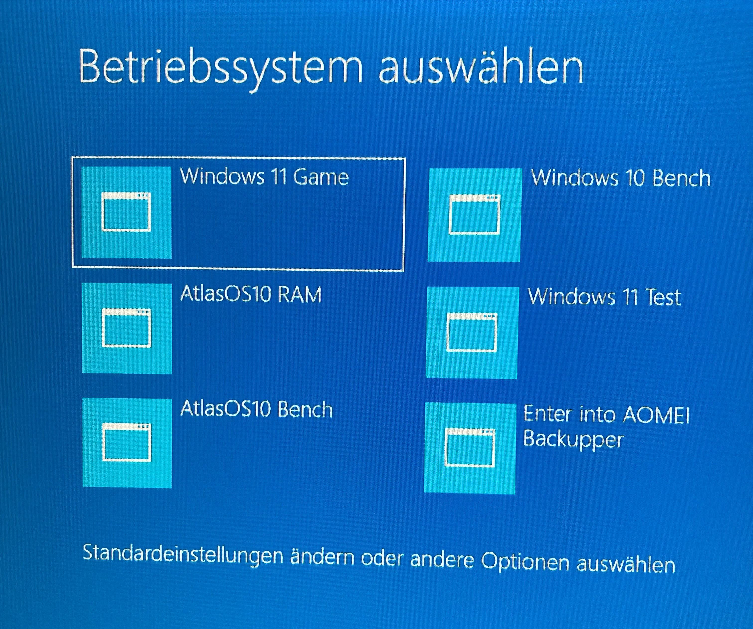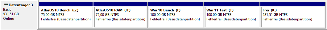 Die Bench- und Testinstallationen (zzgl. künftig zwei Linux-Partitionen) haben ihre eigene SSD, siehe oben. Das Haupt-Windows "11 Game" liegt auf einer anderen. Dort befindet sich auch die EFI-Partition.