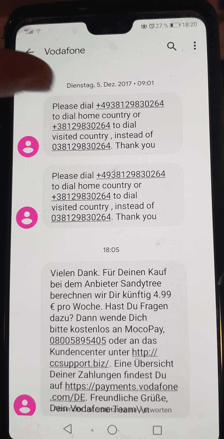 Meine Schwester hat angehängte SMS bekommen, angeblich von Vodafone, sie ist aber bei Klarmobil. Ist das einfach "Spam"? Ich habe ihr jetzt mal die Drittanbietersperre aktiviert.