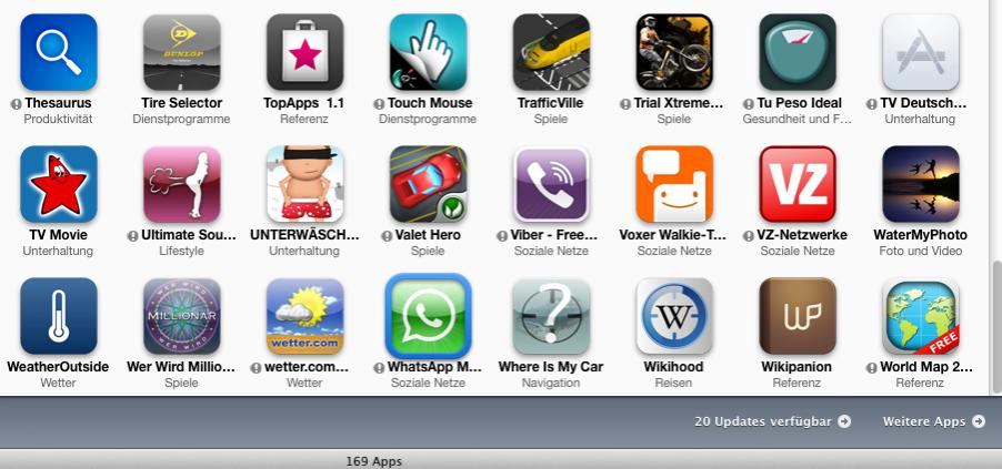 Kontakte, Einstellungen, etc. funzt auch einwandfrei, aber mit den Apps habe ich ein Problem. Ich hatte mal vor ein paar Wochen die Apps von meinem MacBook runtergelöscht weil ich Speicherplatz gebraucht habe. Jetzt kann er die Apps natürlich nicht mehr auf das neue iPhone sycen weil die ja nicht mehr auf meiner HDD sind.