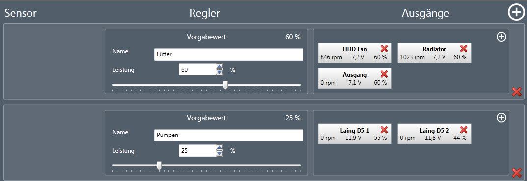 Ich bekomme die beiden Pumpen ja nun als Lüfter angezeigt, wie würdet ihr diese Steuern?