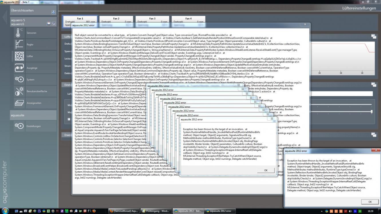 Es kann vorkommen das bei der auswahl der Lüfter die aquasuite abstürzt.
