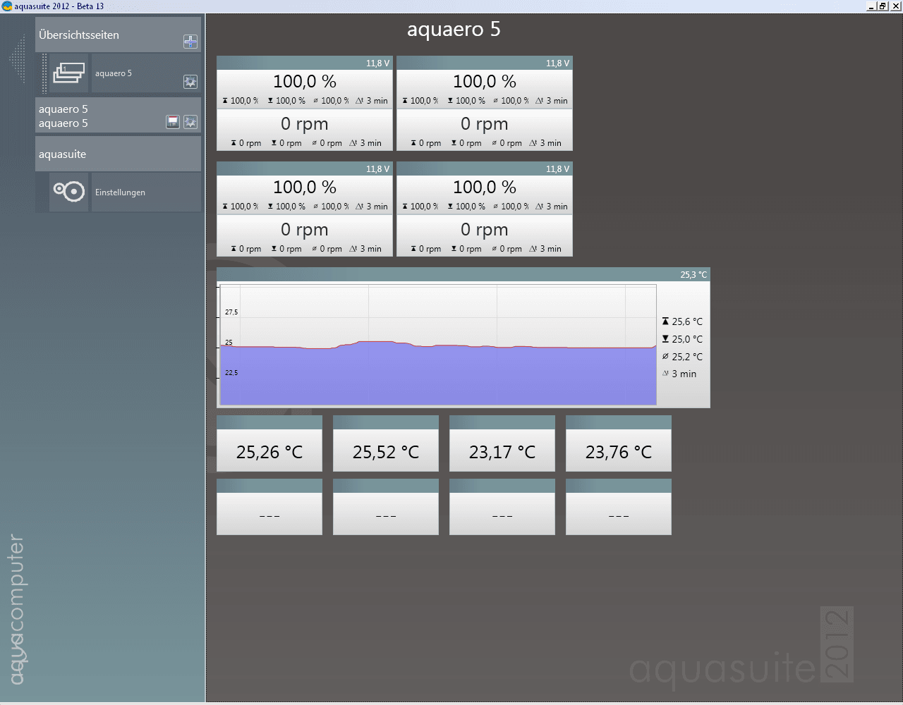 Wenn ich auf Extras -> USB Geräte suchen gehe passiert nichts. Bei aquasuite 2012 sehe ich zwar Daten, kann aber weder den Bildschirminhalt bearbeiten, noch die Lüfter steuern.
