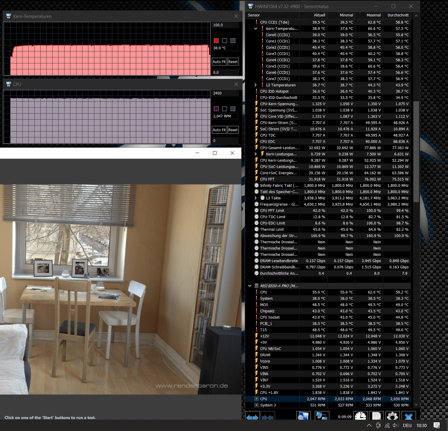 Bei PWM gesteuerter Drehzahl waren beide akustisch wahrnehmbar, aber nichts vo man sagen könnte, es stört, zumal der Rechner direkt neben mir auf Ohrenhöhe Steht. Bei 50% und bei 15% waren die Lüfter gar nicht zu höhren, da hörte man eher die Corsair SP120, welche konstant bei 800 UPM laufen, die Pure Wings 2 laufen bei ca 650 UPM, welche über den intregrierten Kontrollerhub von bequiet! gesteuert sind und zwar auf der kleinsten Stufe. Einzig bei 100% waren beide Kühler jeweils aus dem geschlossenen Gehäuse zu hören