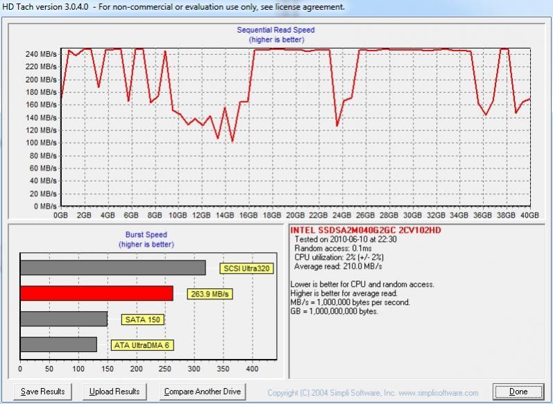 Atto Benchmark, ist wie viele andere, für Sandforce-Controller eher ungeeignet. Das schreibt nur nullen, was der schlaue Controller wegkomprimiert.