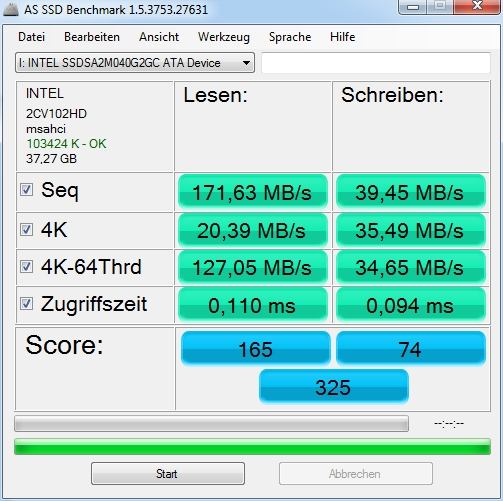 unter AS SSD schauts nun so aus vs. ChrystalDiskMark 3 X64: