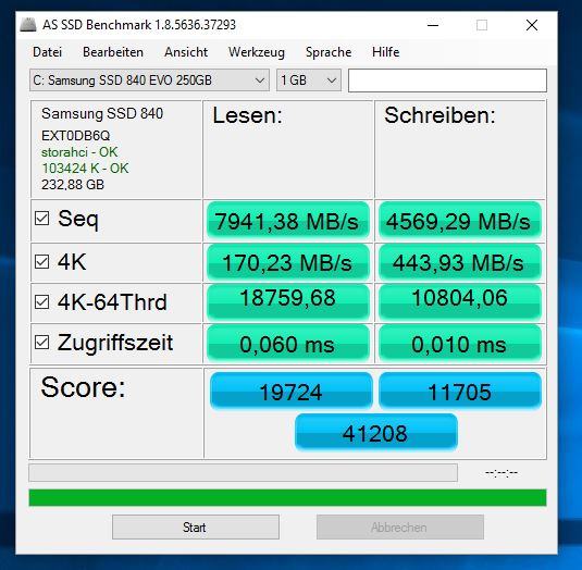 Der RAPID Mode ist reiner (Selbst-)beschiss, Windows cacht ja normalerweise in sonst unbelegtem RAM selbst schon. Genau das versuchen Benchmarks wie der AS-SSD aber zu umgehen um wirklich die SSD und nicht das RAM zu benchen, aber bei solchen RAM Caches wie RAPID klappt genau das nicht. Natürlich ist Performancegewinn in einem Benchmarks wie AS-SSD immens, da werden ja auch die Daten geschrieben und sofort wieder gelesen, stehen also alle immer artig im Cache. AS-SSD schreibt außerdem in der Standardeinstellung ja nicht auf mehr als 1GB Adressraum und das dafür wiederholt, da braucht beim Schreiben also auch nicht mal der Cache geleert zu werden, wenn die gleichen Adressen wieder überschrieben werden. Aber schau Dir mal