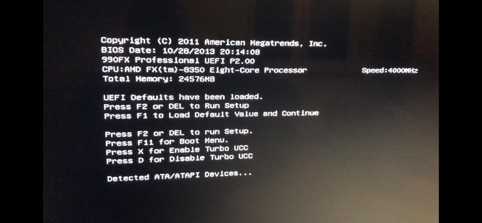 Ich habe ein Bild angehangen. Bis dahin kommt er und wenn ich F1 drücke kommt er wieder zum selben Bild und bei F2 kommt er ins UEFI. Bei F11 kommt er ins Bootmenü aber startet von keinem der Laufwerke und bringt mich wieder ins UEFI.