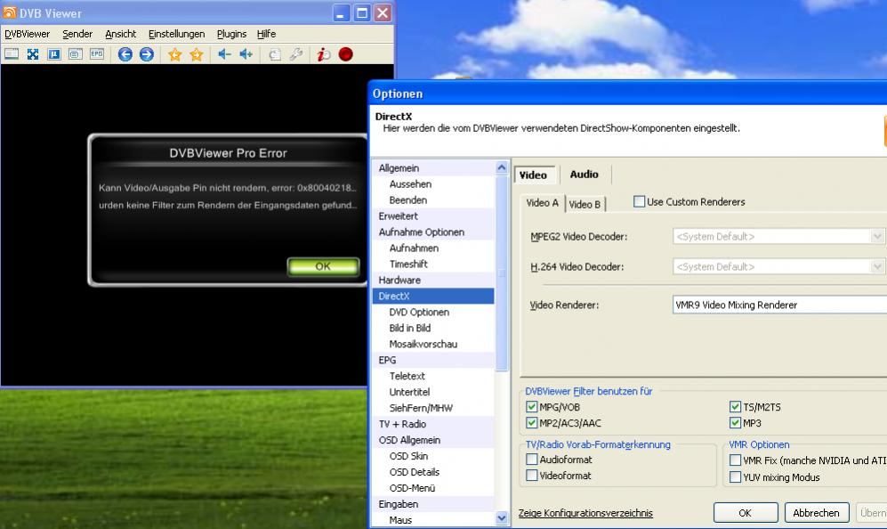 Wäre sehr dankbar über Tipps bzgl. der gesammelten Codecs, die benötigt werden. Momentan tendiere ich zu Win7 32 und DVBViewer (wenn ich das OSD noch zum Laufen krieg, da hab ich noch 'n Bedienungshänger...)