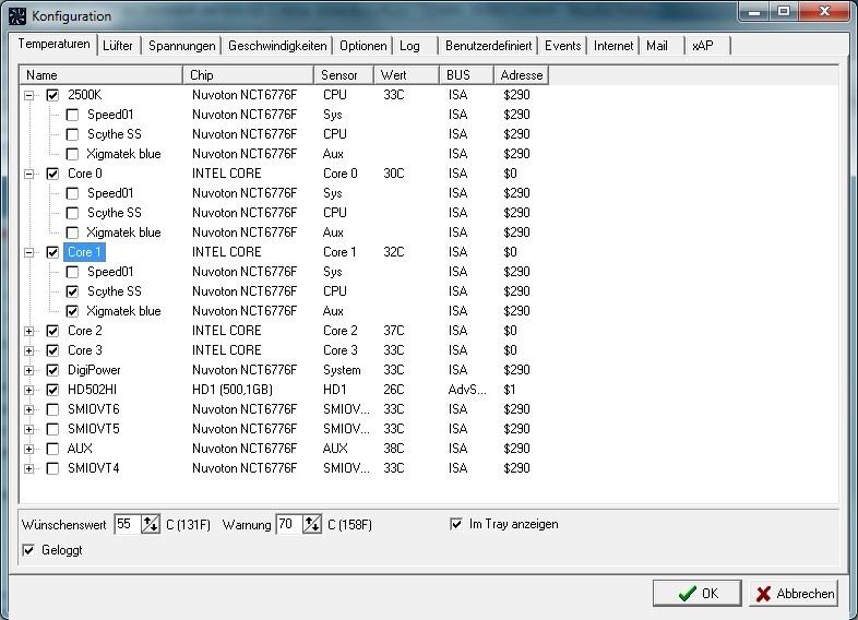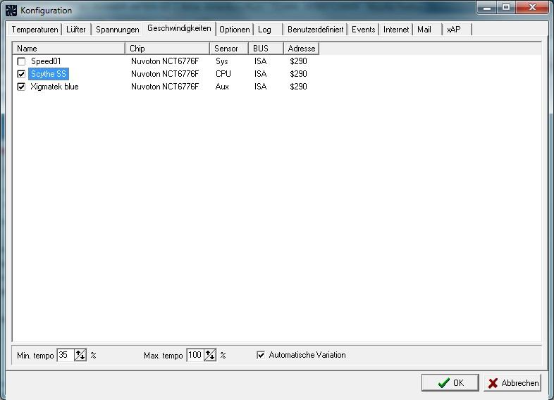 ich geb mich jetzt geschlagen, den CPU2 lüfter regelt Speed Fan jetzt sauber, egal was ich bei benutzerdefiniert einstelle und welchen lüfter ich steuern lasse, hält sich nur an die geschwindigkeits einstellungen