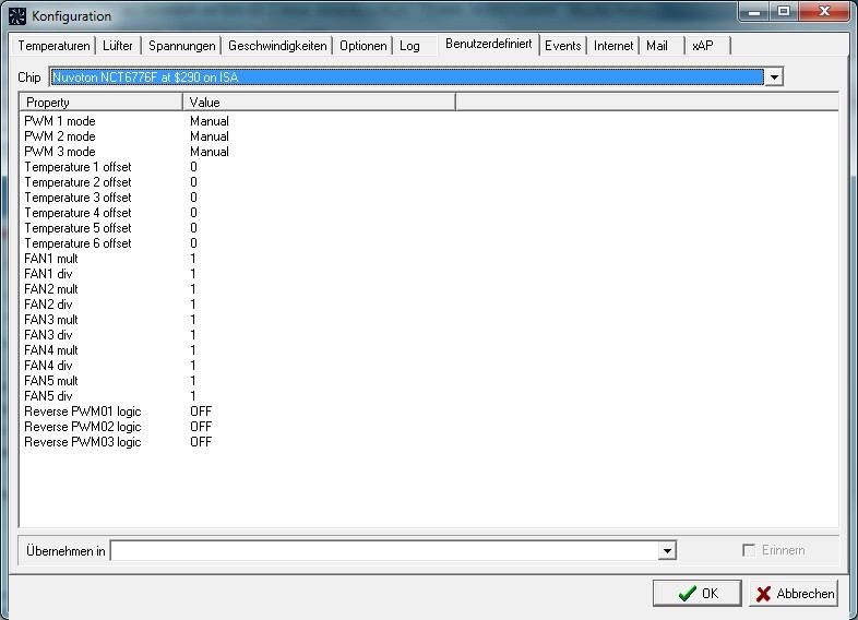 und den CHA3 regel er von 1250u/m auf 1000 u/m runter wenn ich bei PWM3 bei benutzerdefiniert auf Smart Fun IV stelle .... aber egal was ich an geschwindigkeitseinstellungen irgendwo einstelle ... regelt immer auf die 1000 u/m