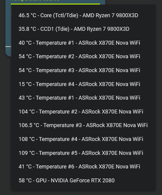 Ich denke es ist der MOS Lüfter, habt ihr Empfehlungen, welche Temperaturquelle ich dafür nehmen soll? Diese 109°C sind irgendwie beängstigend...