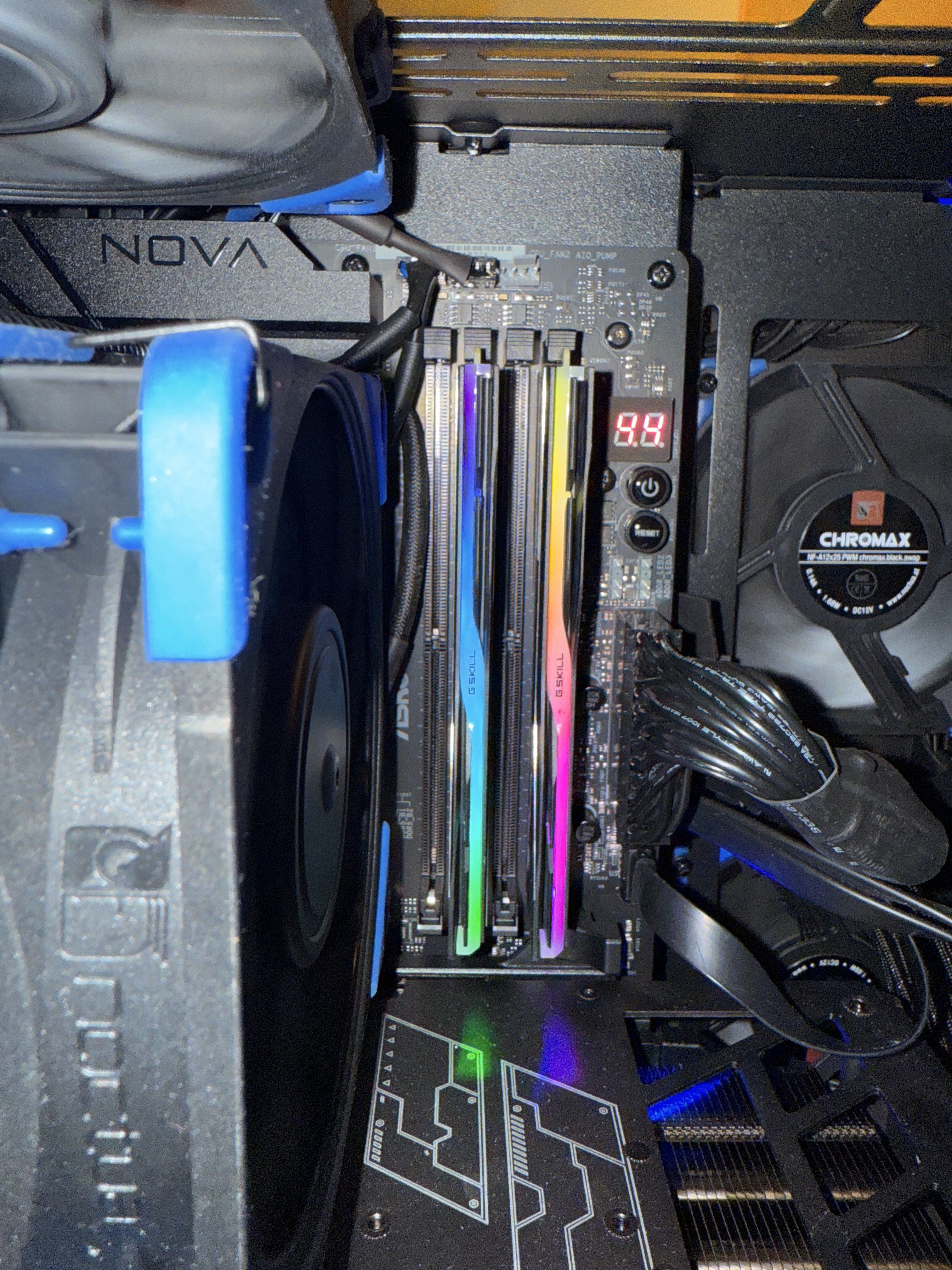 Danke für die Antwort. Mir ging es nicht um den RAM, sondern um die andere Seite (VRM-Kühler vom Mainboard). Bei meinem RAM gibt es keine Probleme mit der Höhe:
