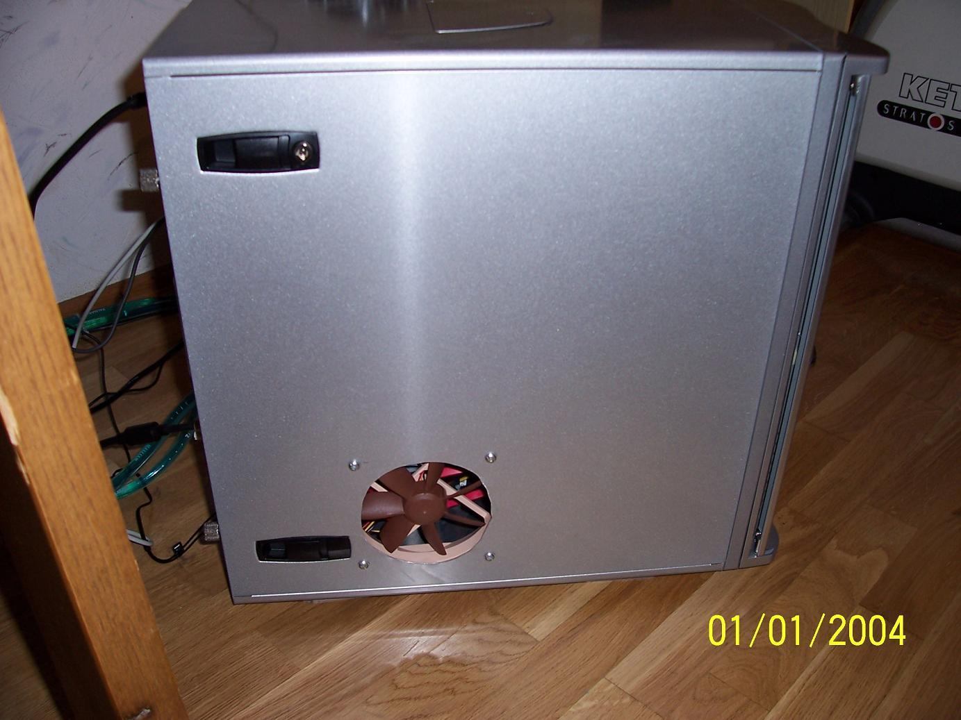 So...genau da hab ich jetzt mal ein Loch ins Gehäuse gebohrt und nen 120er Lüfter drangeschraubt (reinblasend). Dreht nur mit 800 U/min., aber jetzt sind es auch bei extremer Belastung nur noch um die 30 Grad MB-Temp.
