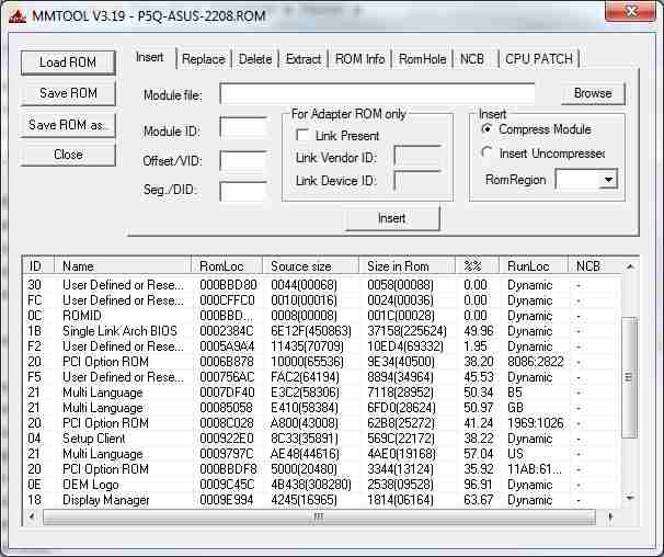 Woher hast Du denn das Option ROM? Im Übrigen würde ich Dir zum MMTool_3.19_Mod_21FiX raten. Zur Not lade ich Dir die benötigten Tools und Dateien hoch, heute wird das aber nichts mehr. Aber wahrscheinlich findest Du das auch alleine. (Ich bin mir nicht ganz sicher, aber schau einmal in den Foren von mydigitallife und rebelshaven.) Viel Glück und Vorsicht (!), zerflash Dir Dein schönes Board nicht. ;)
