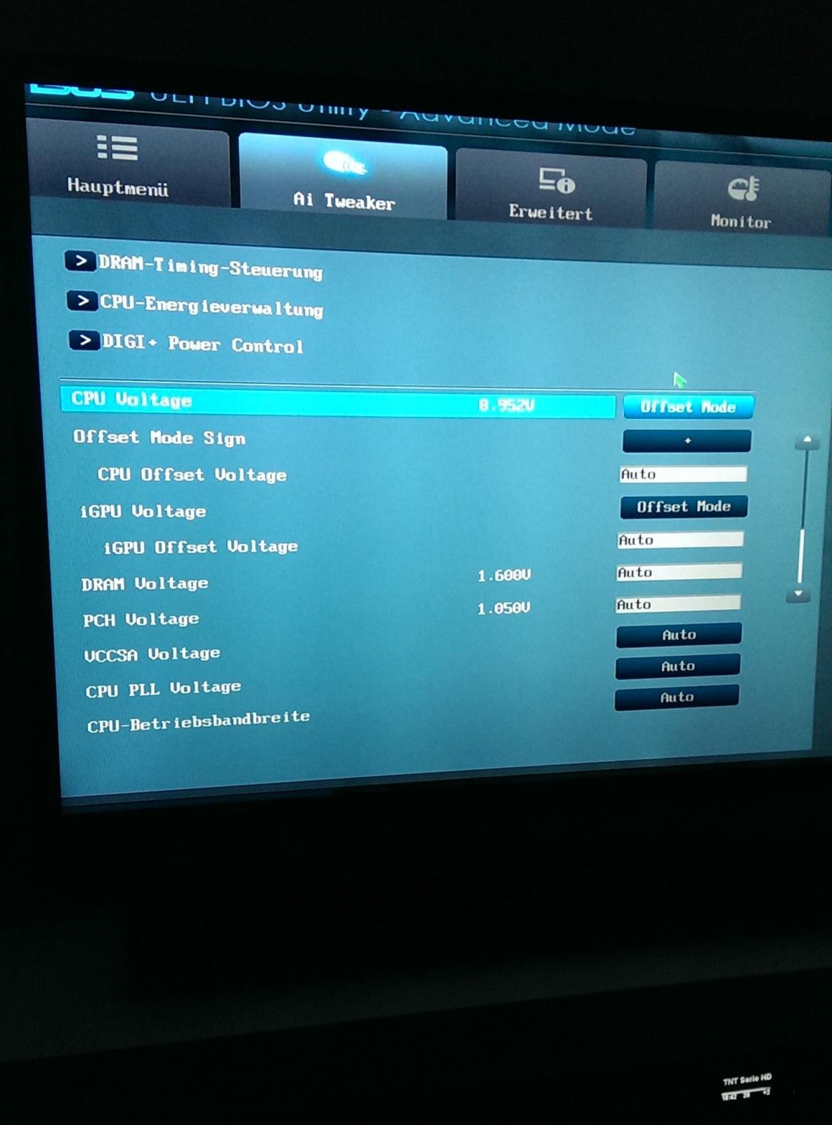 Du musst über den Offset gehen, d.h. Offset Mode Sign auf Minus, weil du ja weiter runter willst. Dann bei CPU Offset Voltage um wie viel.