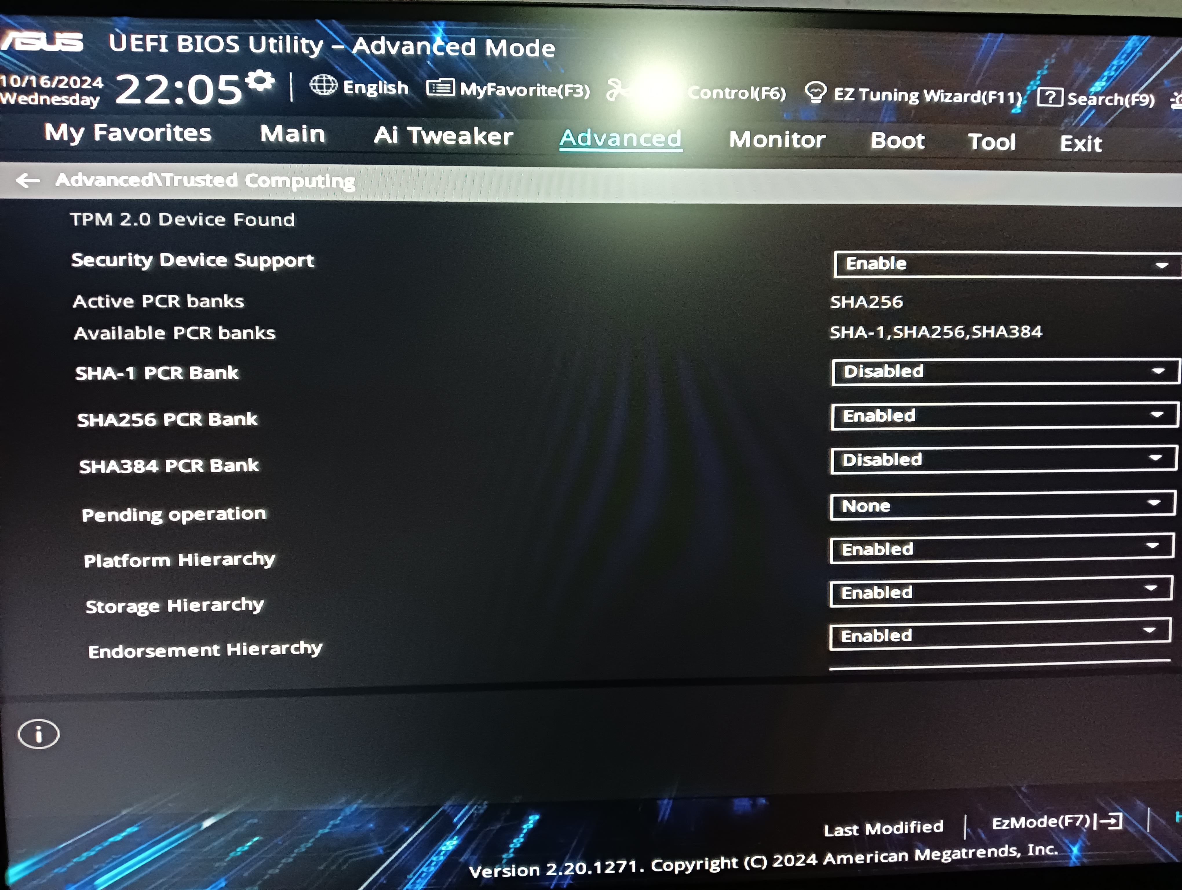 Wenn ich das 6223 flashe, was muss ich dann machen, um TPM2.0 zu aktivieren? Im 4602 gibt es schon einen Eintrag "AMD fTPM" unter Advanced, aber mir ist nicht klar, was die an dieser Stelle angebotenen Einstellungen bewirken.