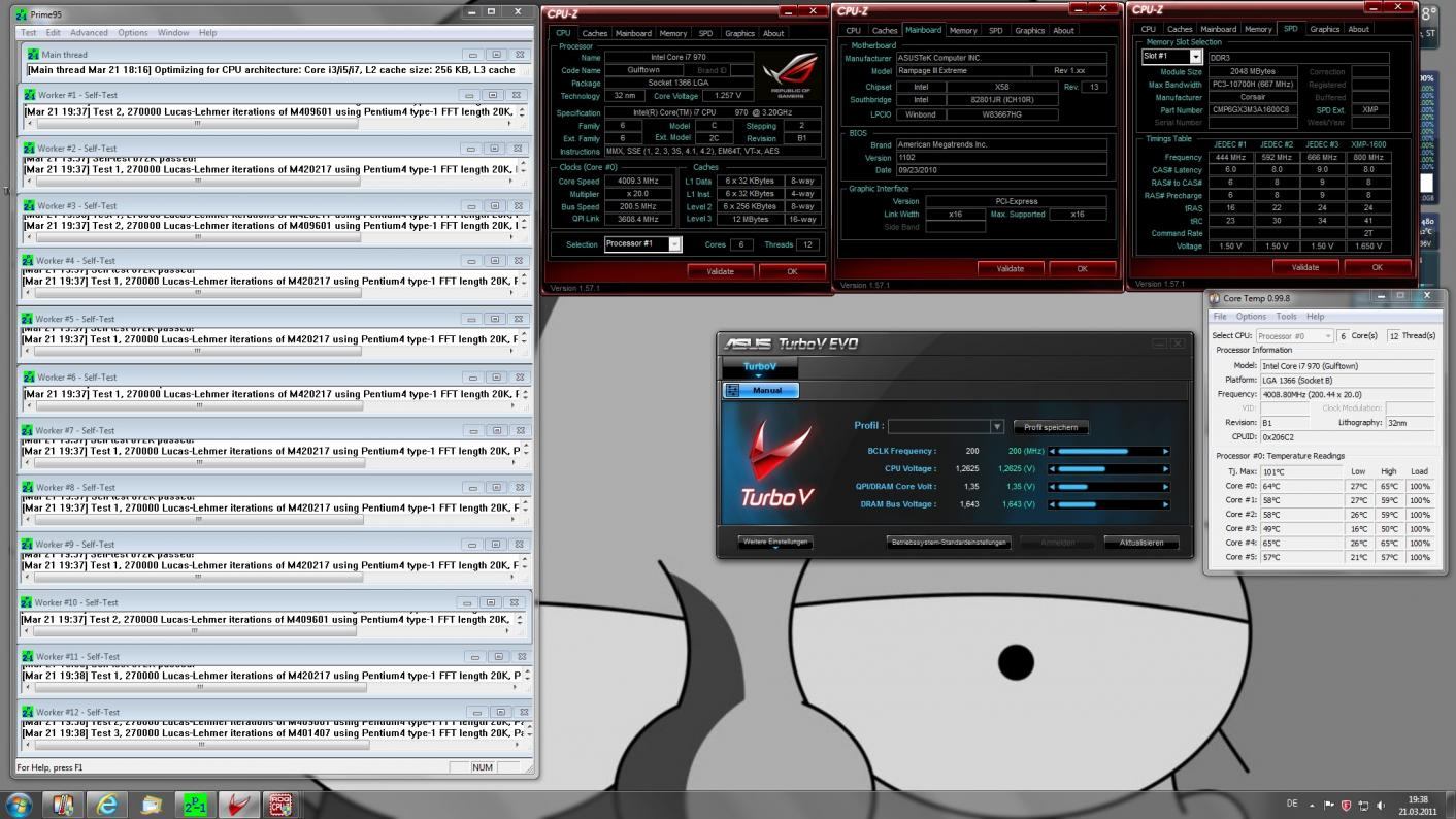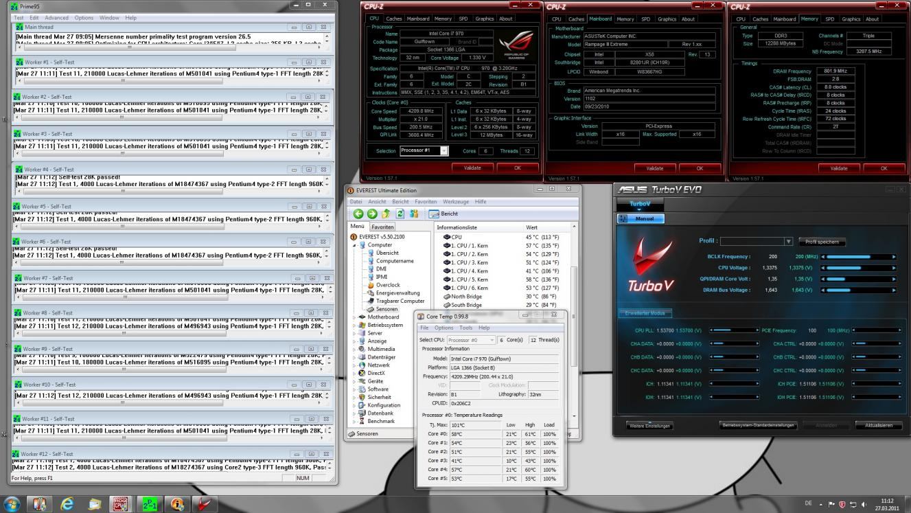 Standardmäßig wird er vom Rampage III Extreme als DDR3-1333 erkannt und betrieben. Da läuft er auch stabil und einwandfrei.