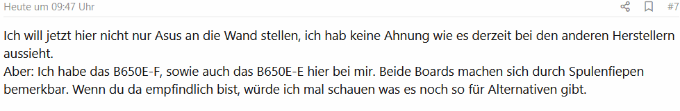 Im CB schreibt jemand er hat Spulenfiepen mit B650E-F und B650E-E, bisher hab ich aber davon nix gehört:confused: