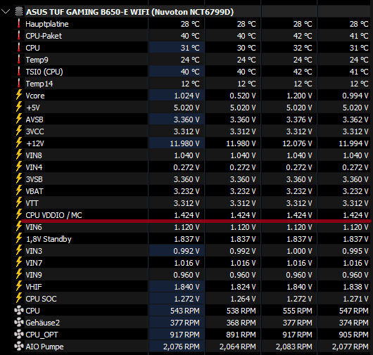 Jetzt sehe ich das die Spannung, VDDIO / MC mit 1,42 V, doch ziemlich hoch ist.