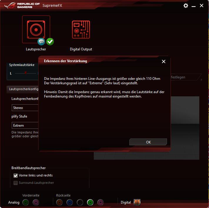 ich habe folgendes Problem: Nach einer gewissen Zeit in Windows 10 bekomme ich die Störung von Supreme-FX, bezüglich der Lautsprecher Erkennung.