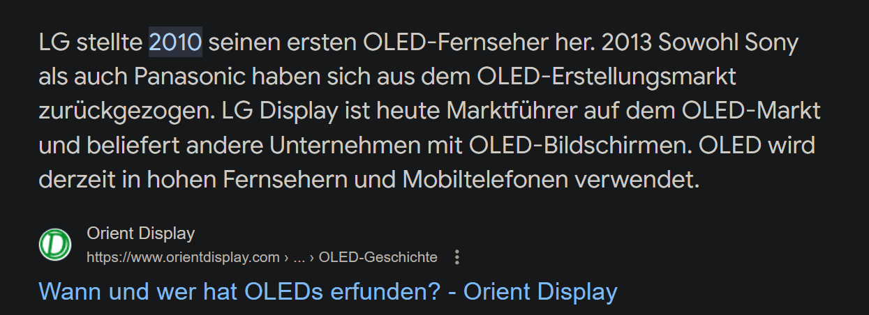 OLED gibts halt schon ziemlich lange auf dem Markt ... aber da sich viele damit vorher nie befasst haben kann es halt schonmal vorkommen das sie denken das es OLED erst seit 1 oder 2 Jahren gibt.
