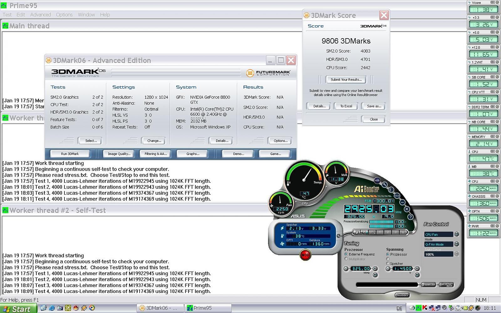 Dualprime läuft gerade, hatte gleichzeitig mal 3DMark 2006 in Standardeinstellungen laufen lassen. Wie man sieht ging es während Prime lief.