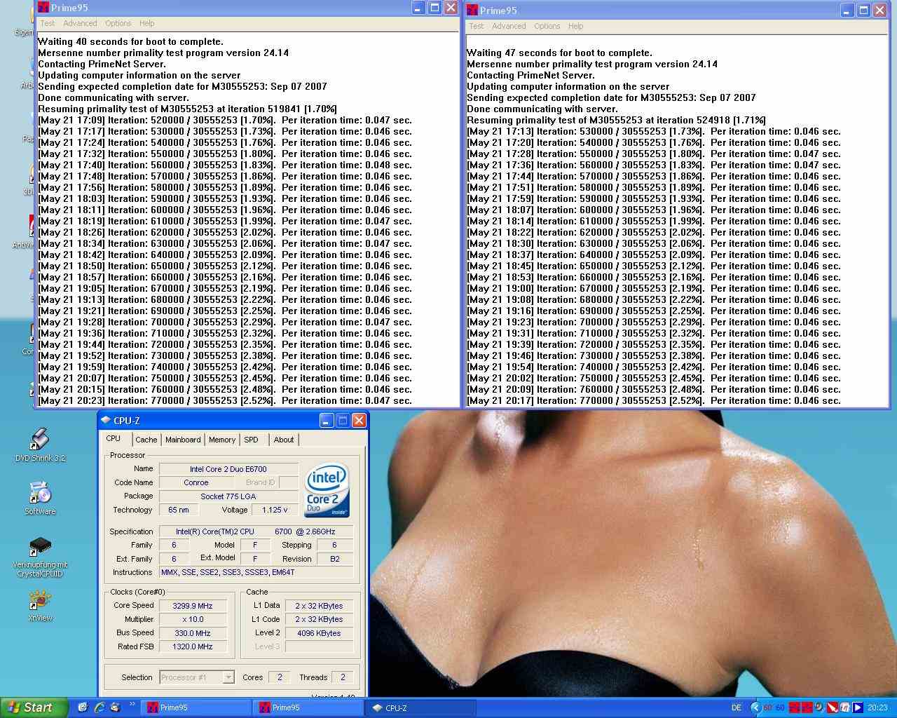 PS: Wie gesagt mit der 6800Ultra läuft er sogar unter 3D Last. Oder mit der 8800GTX bis. max. 3,0GHZ und alle Spannungen auf Auto.