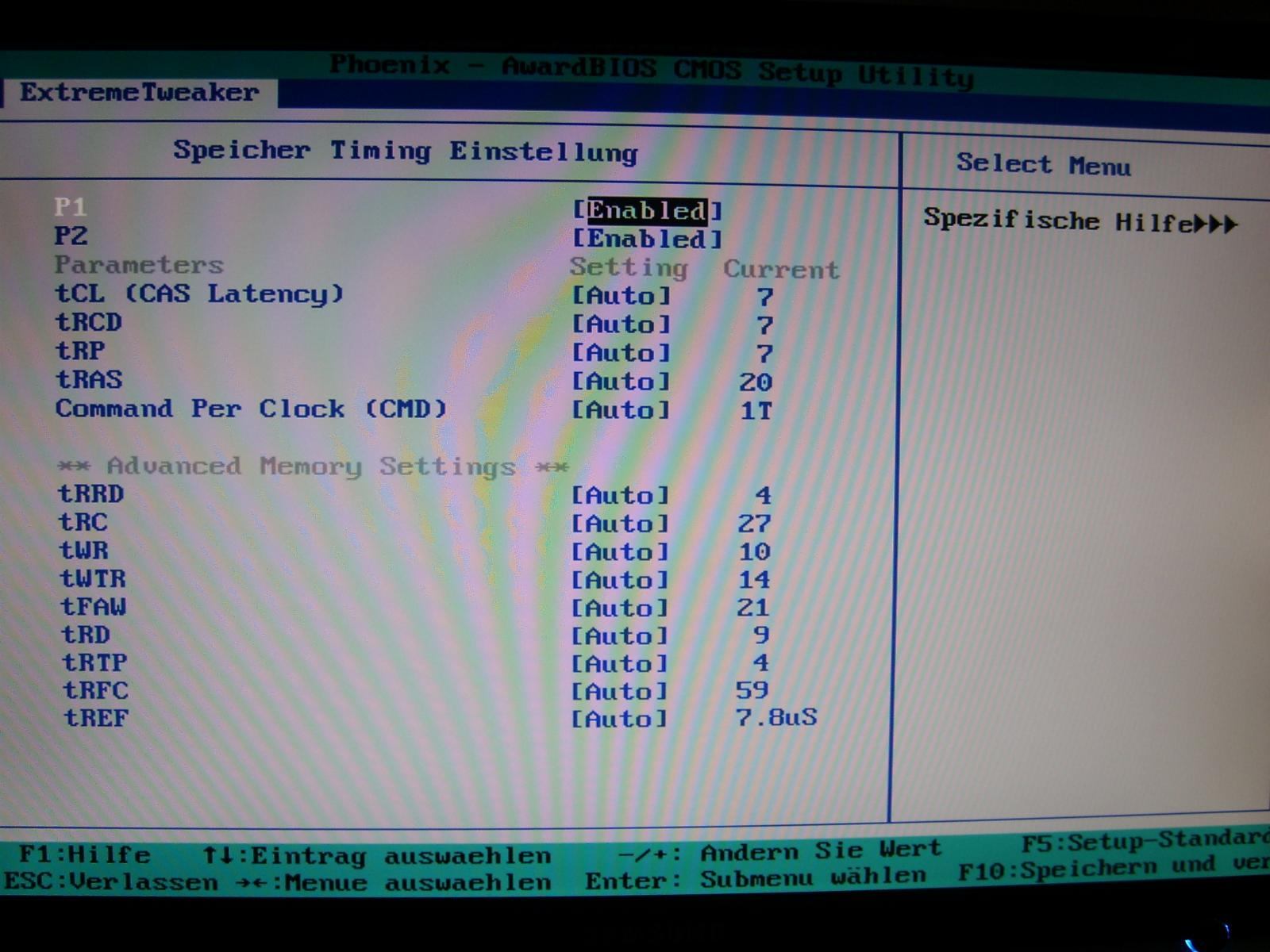 Versuch mal bei den Ram Timing Einstellungen P1+P2 auf Enabled zu machen. Das hat bei mir sehr viel gebracht.