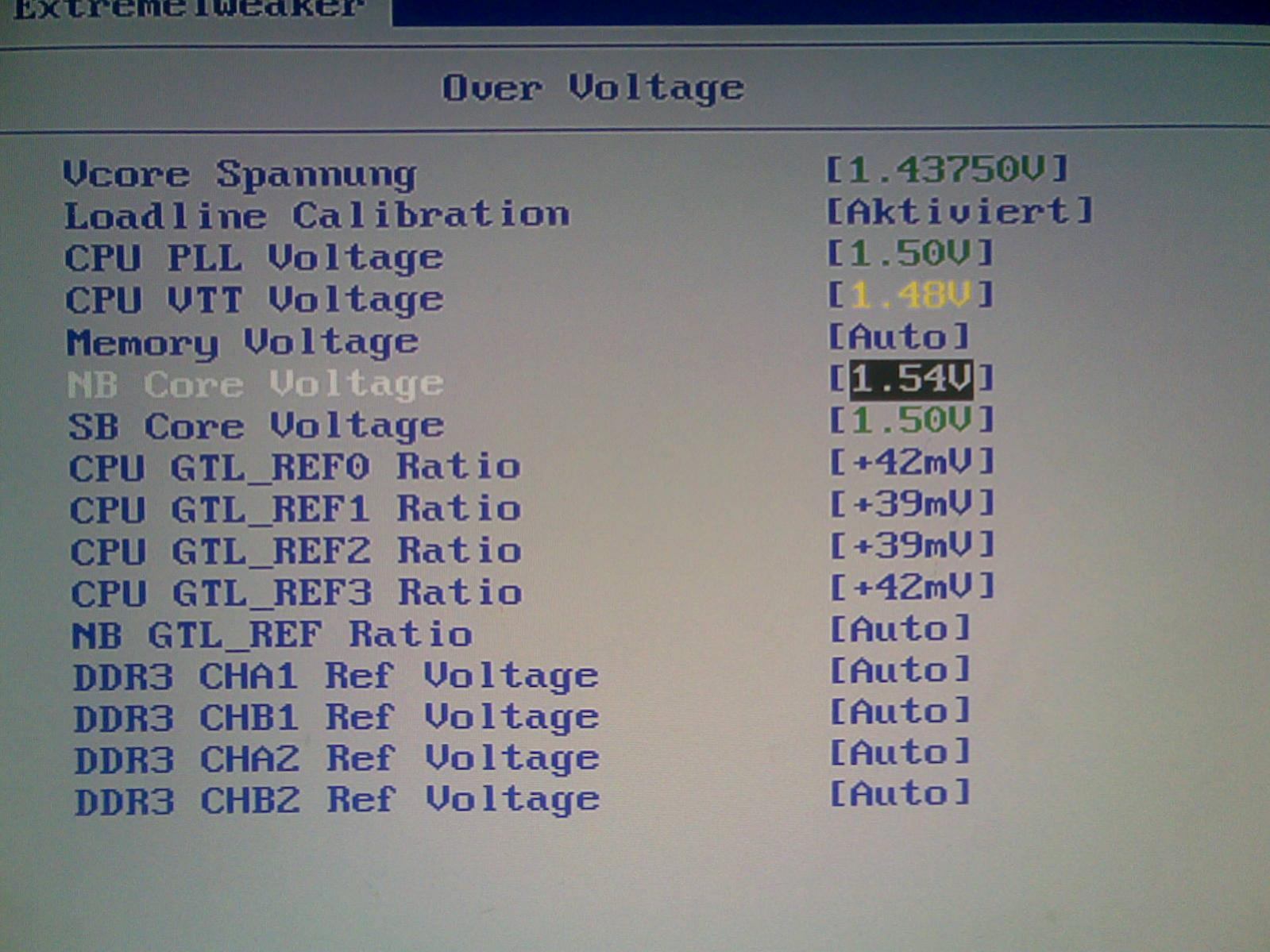 Also ich würd mal die PLL 1.54 stellen und es dann nochmal versuchen. An sonsten, 1.56 wären für 24/7 auch noch in Ordnung...