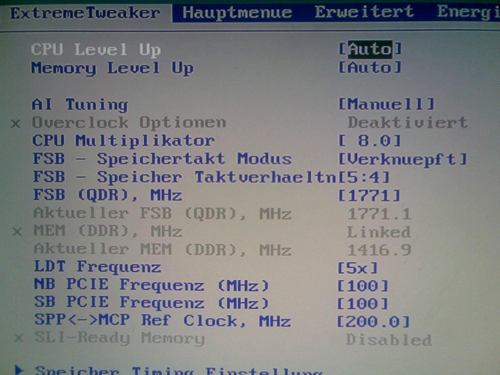 also, hab jetzt mal die einstellung von [SoD]r4z0r probiert, will er auch nicht ab 444FSB ist ende, also die 444FSB erreiche ich auch nicht....