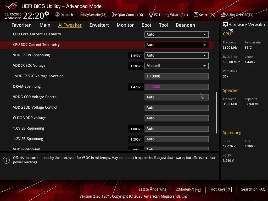 So hab ein neuen BUG gefunden. Wenn ich meine Dram calc safe eingebe und denn pc dann hochfahre alles super und stabil. Wenn ich aber zb ERP enable mache dann fährt der pc runter, alles leds gehen aus und wenn ich den pc wieder hochfahren möchte, läuchtet die RAM Led und pc bleibt schwarz, schalte ich den pc aus und ein, geht er wieder normal ins windows.