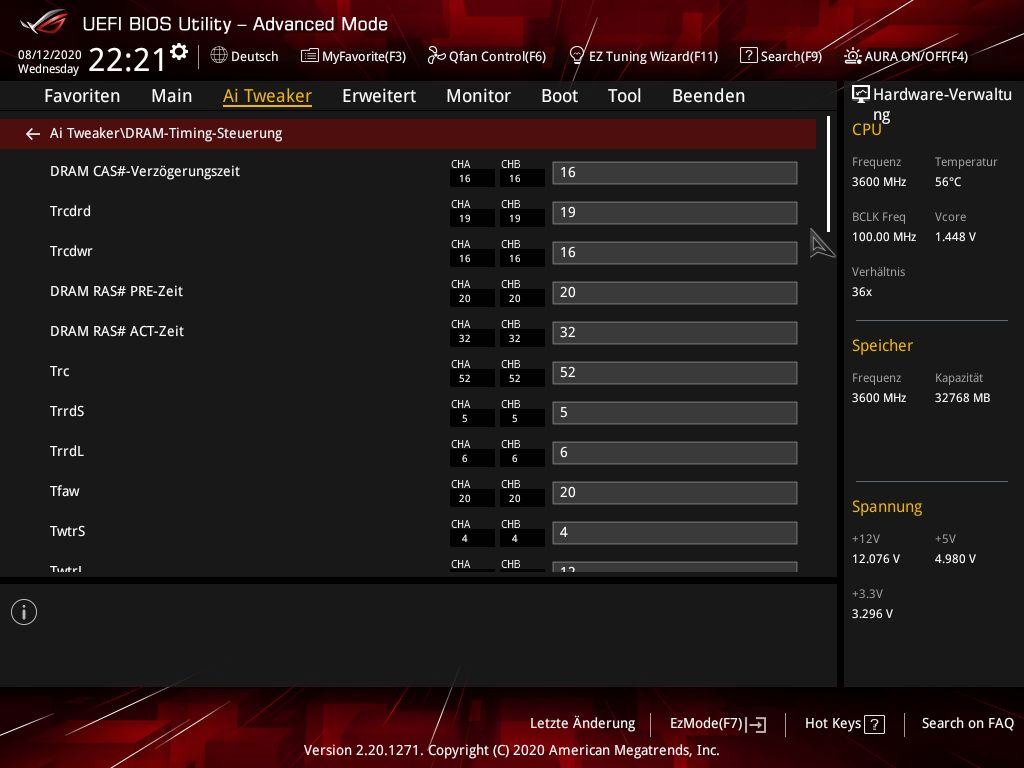 tRP und tRCDRD sind schon sportich eingestellt, wenn was instabil wird, beide Werte auf 20 entschärfen.