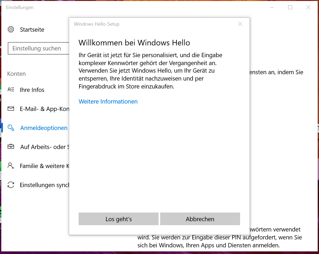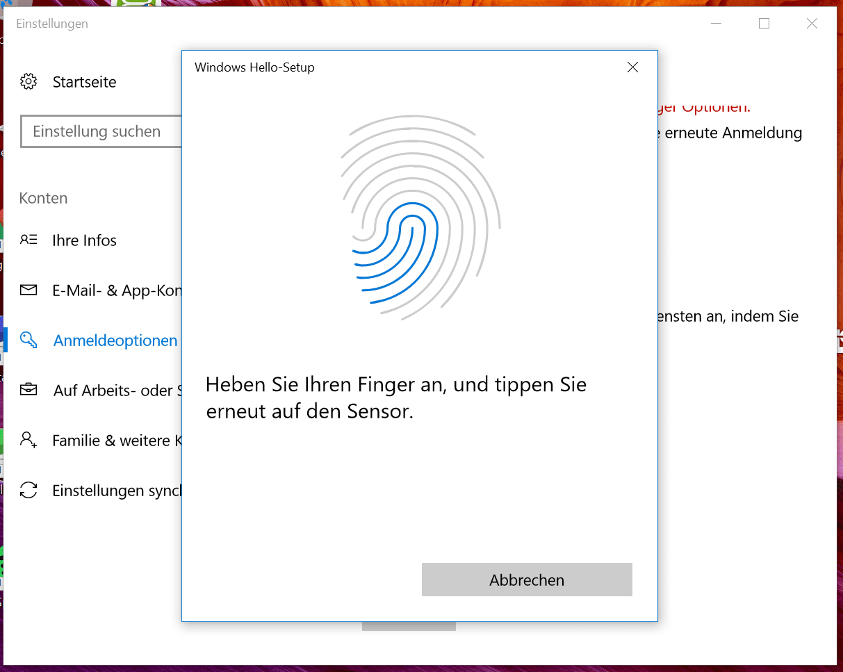 Auf der rechten Seite hat ASUS einen Fingerabdrucksensor verbaut. Die Einrichtung ist von diversen Smartphones bekannt. Zuerst soll der Finger mehrfach auf den Sensor gelegt und wieder angehoben werden. Dann folgt das gleiche Prozedere mit unterschiedlichen Positionen des Fingers, damit auch die äußeren Ränder erkannt werden. Zu guter Letzt muss eine PIN vergeben werden. Diese PIN hat zwei Funktionen: zum einen soll so der Login ermöglicht werden, wenn der Fingerabdrucksensor nicht funktioniert. Zum anderen muss die PIN eingegeben werden, falls weitere Fingerabdrücke eingerichtet werden. Die Einrichtung geht problemlos von statten. Der Sensor erkennt den Abdruck schnell und relativ zuverlässig, bis auf wenige Ausnahmen, wenn der Finger nicht korrekt aufliegt. Sollte dass der Fall sein, wird man von Windows Hello darauf hingewiesen. Beispielmeldung: Bewegen Sie Ihren Finger etwas höher. Zusammengefasst lässt sich sagen, dass ASUS einen sehr guten Sensor verbaut hat.
