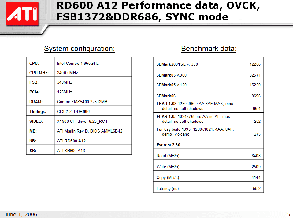 ATI RD 600 Conroe gegen Intel Bad axe Conroe