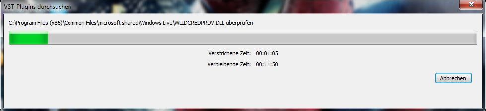 Scheinbar versucht Audacity VST-Plugins in einer Windows Live dll zu finden und hängt sich dabei auf.