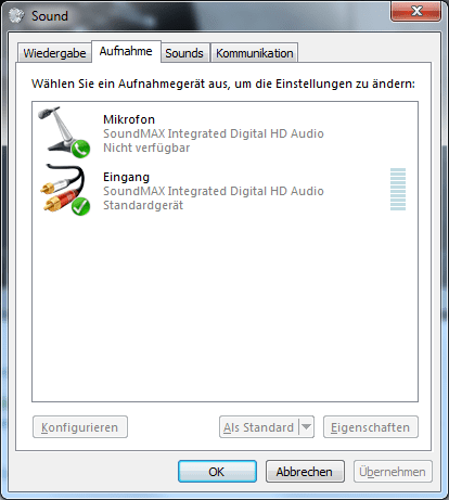 Ich habe seit dem Umstieg von windows XP auf Windos 7 64 Bit das Problem, dass ich den Sound nicht mehr aufnehmen kann.