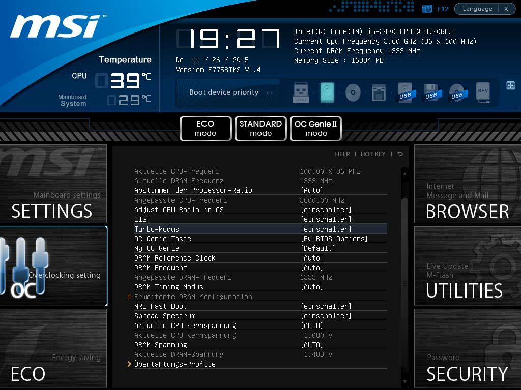 Naja... irgendwie kann ich über den Turbo nicht anheben. Ich habe im BIOS nur eine Liste bis Multiplikator 32. (aktuell auf Auto)