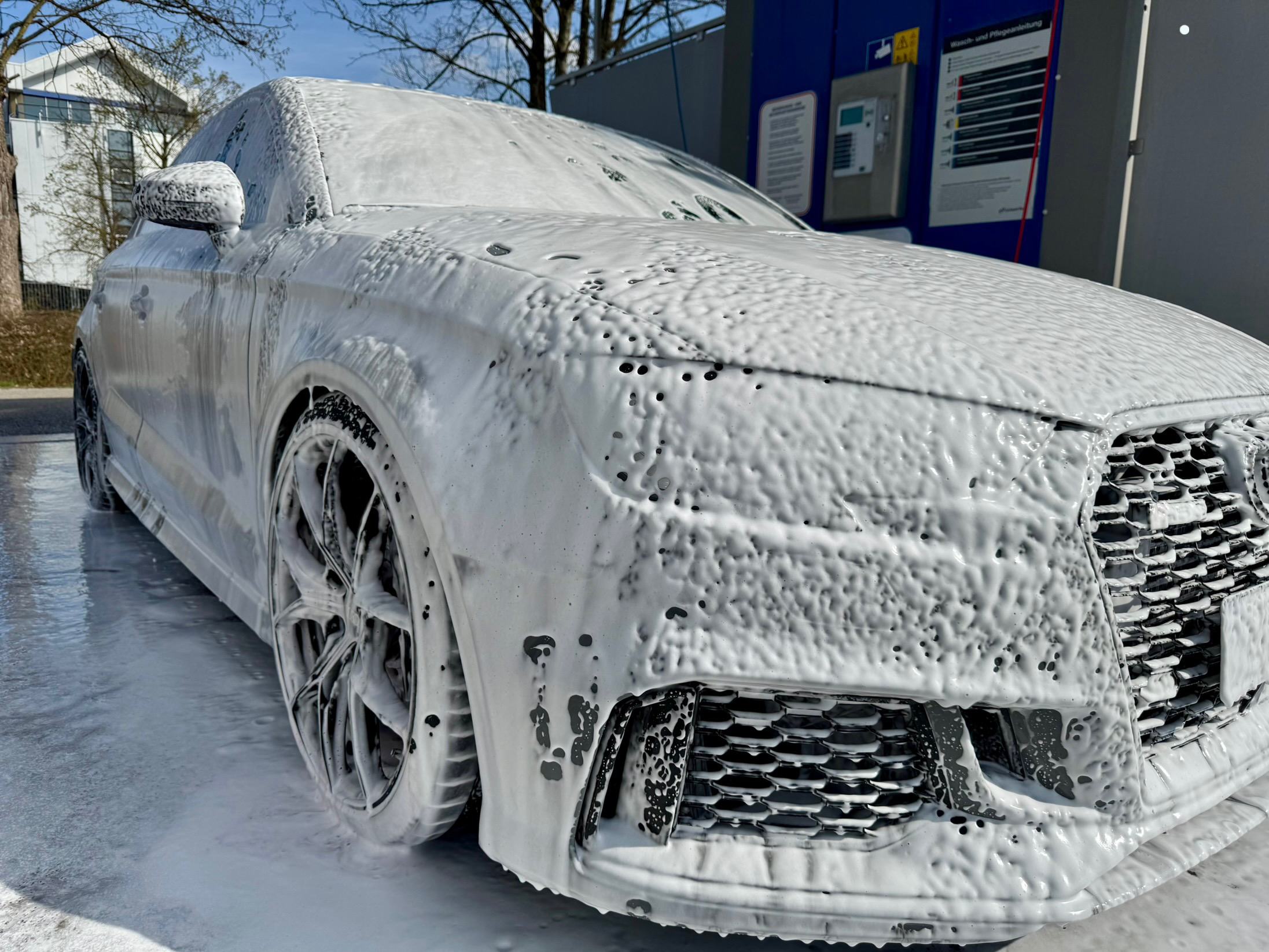 Ja, das ist leider wahr. Erst vorletztes WE gemacht gehabt, 2 mal mit Familie unterwegs und schon war es wieder fällig. So versifft will ich ihn aber auch nicht lange abstellen… Waschen tue ich aber schon seit geraumer Zeit gar nicht mehr mit Handschuh/Eimer, sondern schäume nur noch dick ein und dusche intensiv ab. Schont bei so viel Waschen in der Winterzeit einfach den Lack.